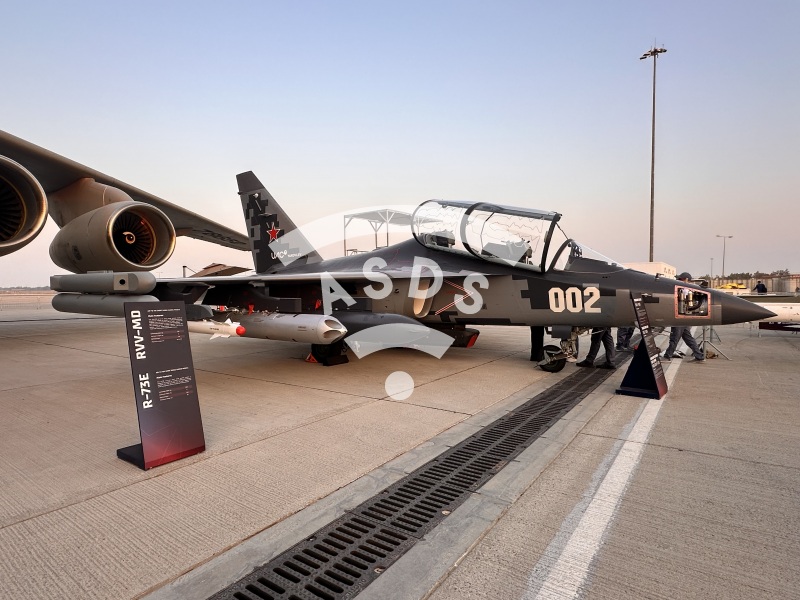 Yakolev Yak-130 advanced jet trainer on static display at the Dubai Airshow 2025.